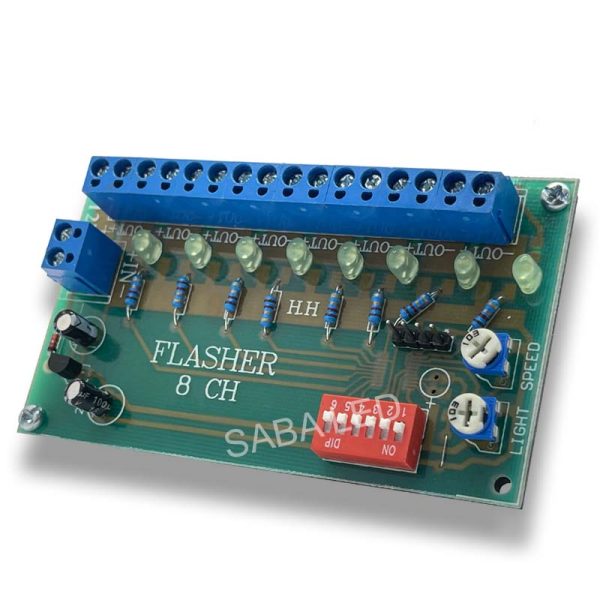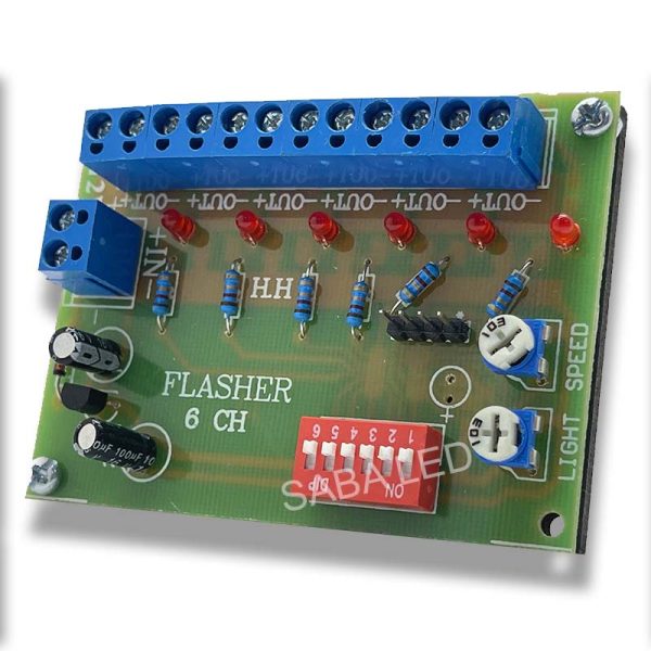 این فلاشر ال ای دی 2 کاناله افکت دار با دو پتاسیومتر است که از آن به‌منظور تنظیم شدت نور LED تابلوهای ثابت و سرعت نور آن‌ها استفاده می‌شود. برای کار با پتانسیومترهای تعبیه شده بر روی مدار، تنها کافی است با یک پیچ گوشی پتانسیومتر را چرخانده و به این شکل شدت نور یا سرعت روشن و خاموش شدن ال ای دی های دلخواه خود دست یابید.