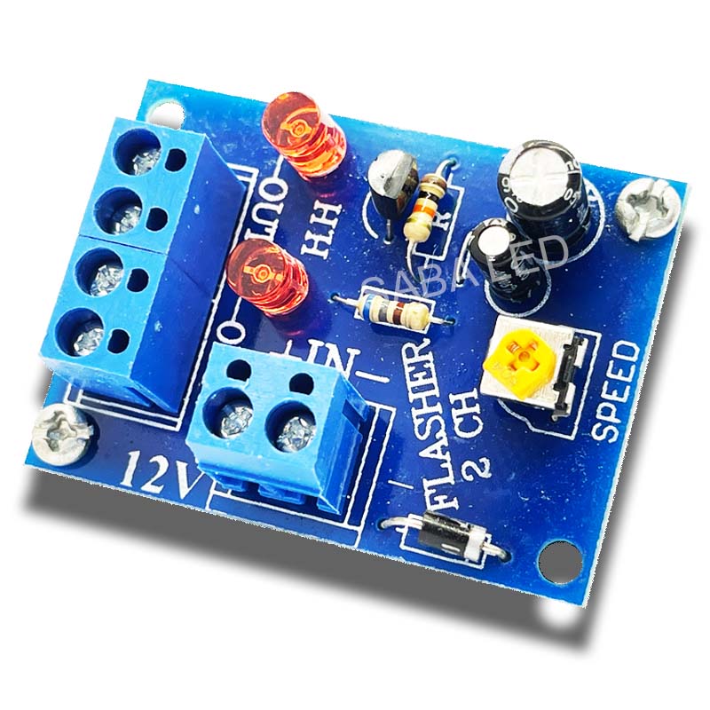 این فلاشر ال ای دی 2 کاناله ساده با یک پتاسیومتر است که از آن به‌منظور تنظیم سرعت افکت LED تابلوهای ثابت استفاده می‌شود. برای کار با پتانسیومتر تعبیه شده بر روی مدار، تنها کافی است با یک پیچ گوشی پتانسیومتر را چرخانده و به این شکل سرعت روشن و خاموش شدن ال ای دی های دلخواه خود دست یابید.